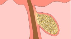 Le ghiandole sebacee hanno una struttura alveolare e sono dotate di un canale attraverso il quale fuoriesce il sebo. I sebociti sono le cellule che compongono la ghiandola sebacea. Una volta differenziati (maturati) completamente (circa 7-8 giorni) i sebociti si rompono e lasciano fuoriuscire i lipidi di cui sono ricchi, che attraverso il condotto chiamato canale pilare raggiungono l’epidermide su cui si diffondono.